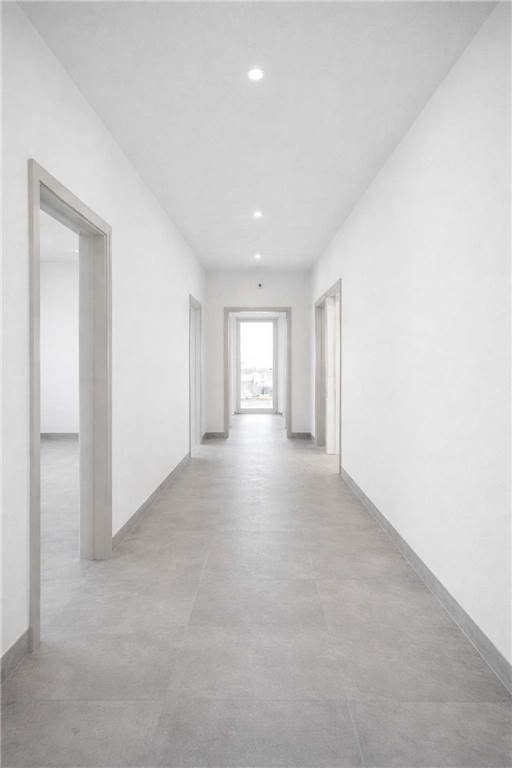 Attualmente prevende la realizzazione di un ampio salone con cucina, tre camere e bagno.