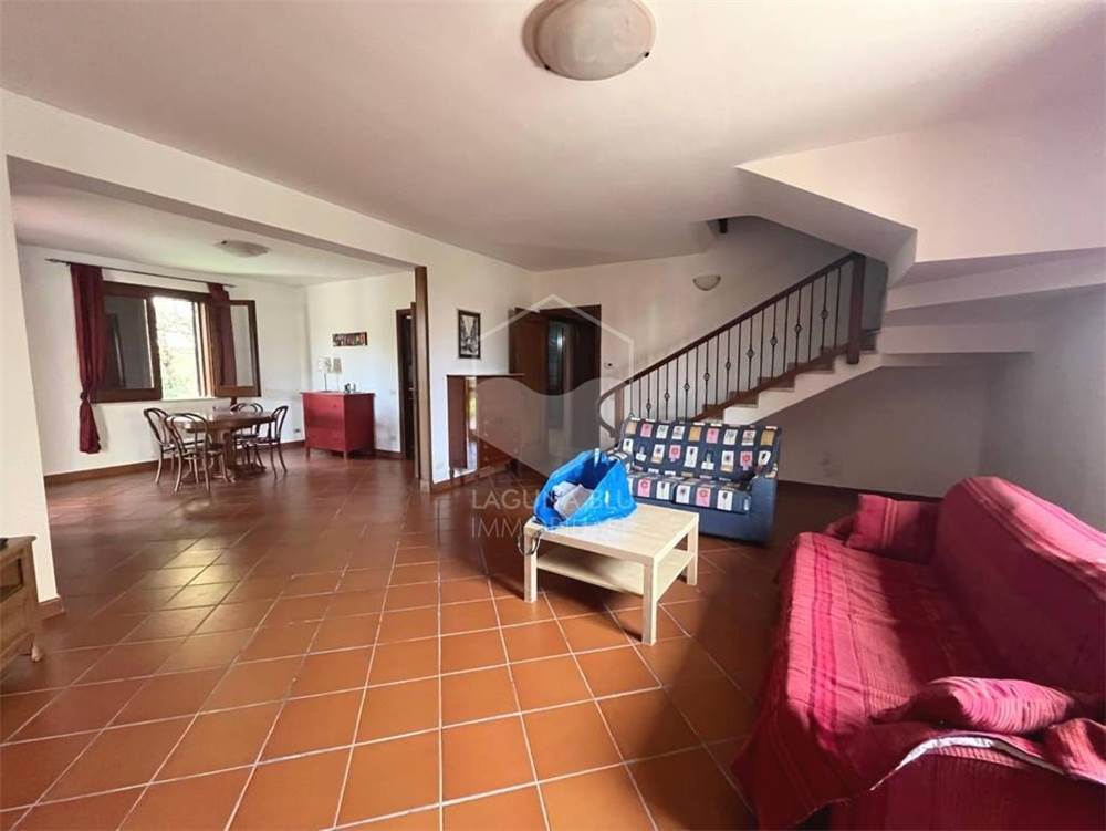 La villa si presenta in condizioni abitabili, gli ambienti sono luminosi e ben distribuiti, con ampie finestre che consentono l'ingresso di luce naturale durante tutto il giorno. Internamente è composta al piano terra da un doppio salone, cucina abitabile con annessa lavanderia e bagno con doccia, mentre al primo piano troviamo tre camere da letto di cui una con veranda, un secondo bagno ed infine un comodo ripostiglio.