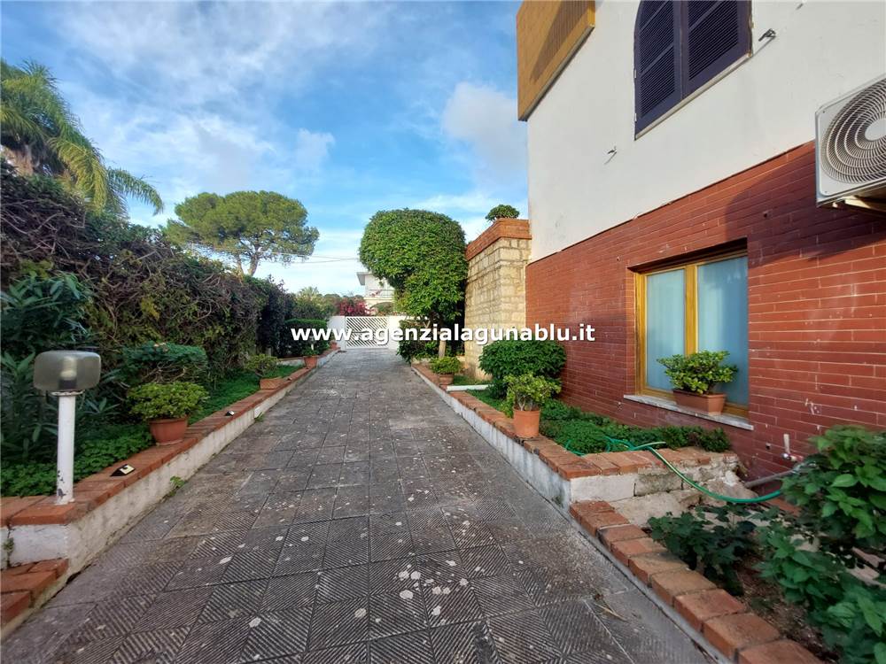 La proprietà gode di ampie aree pavimentate, percorsi pedonali, zone verdi con essenze mediterranee e spazi destinati al parcheggio interno.