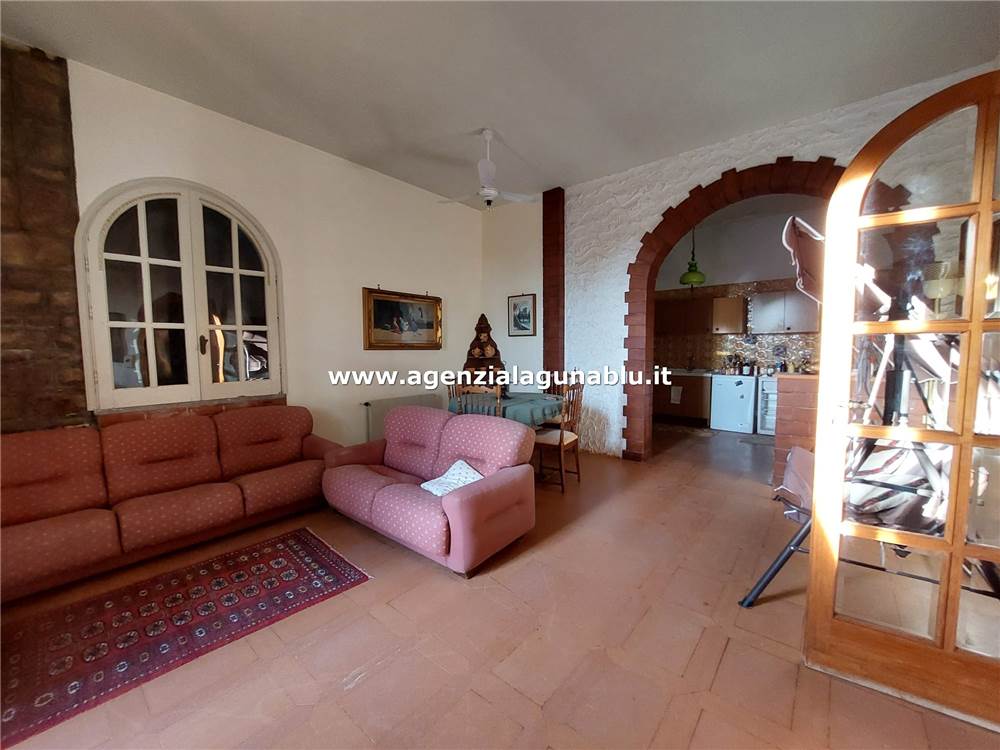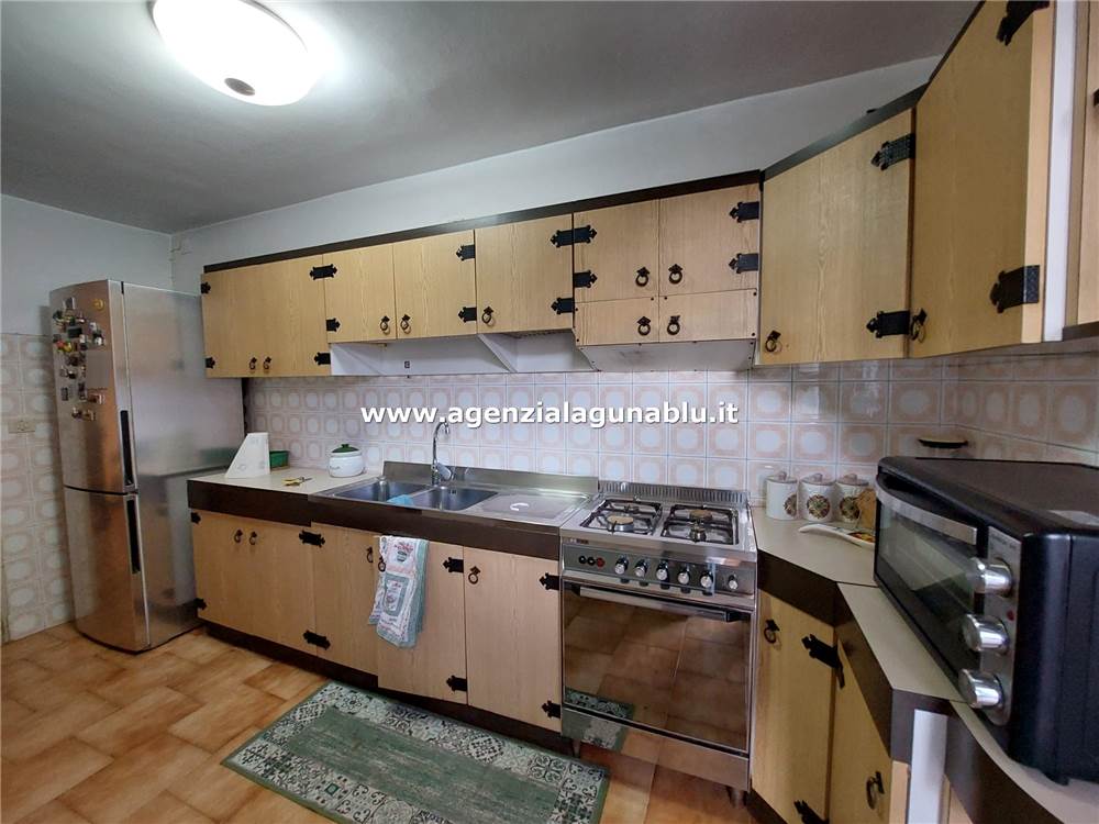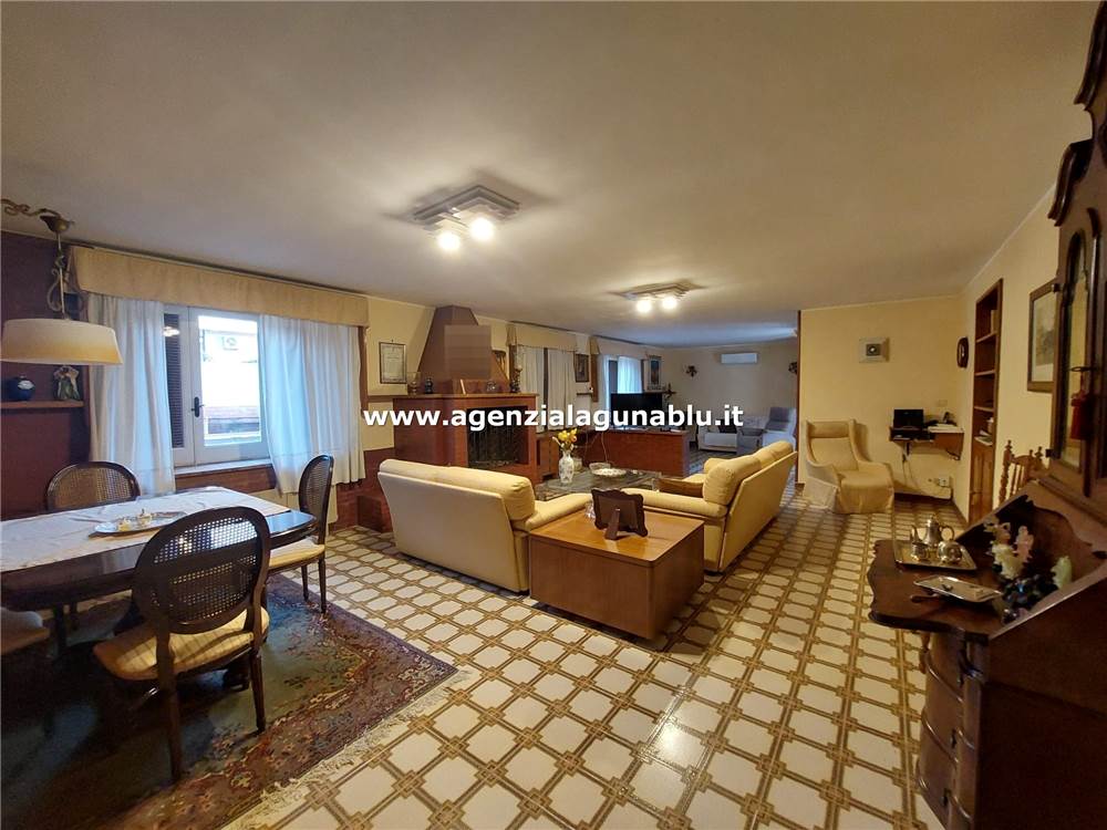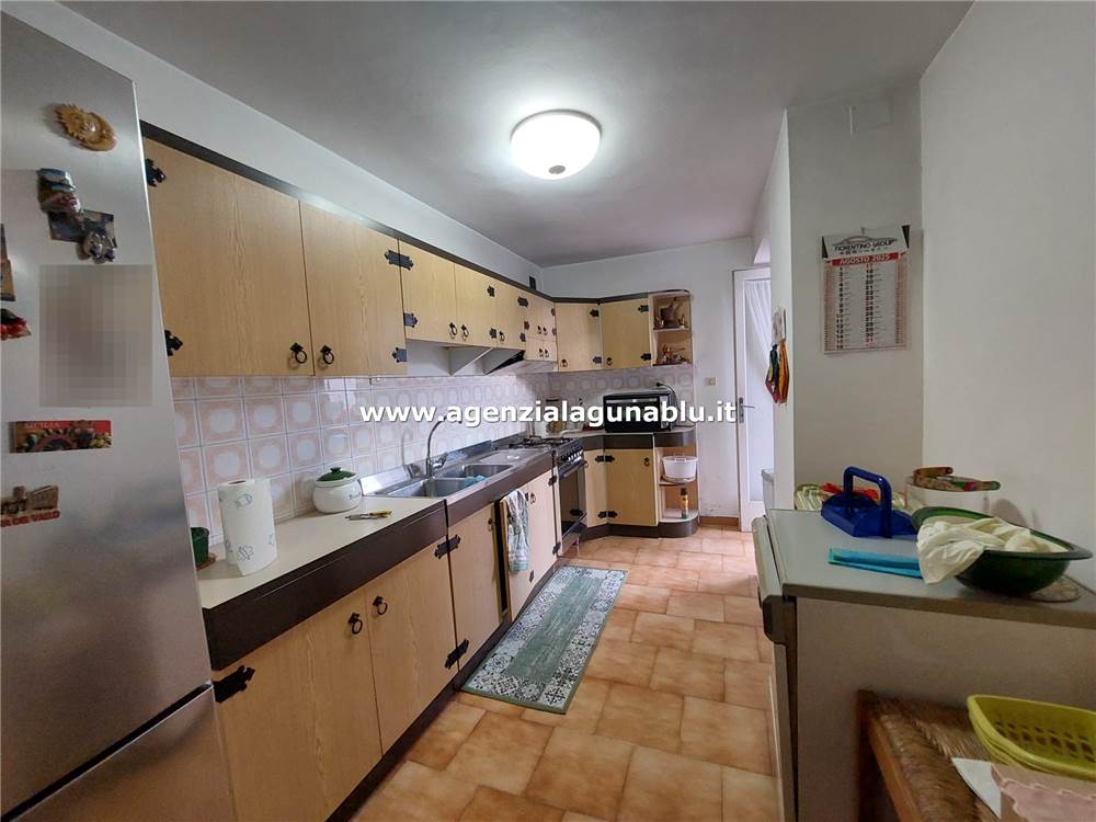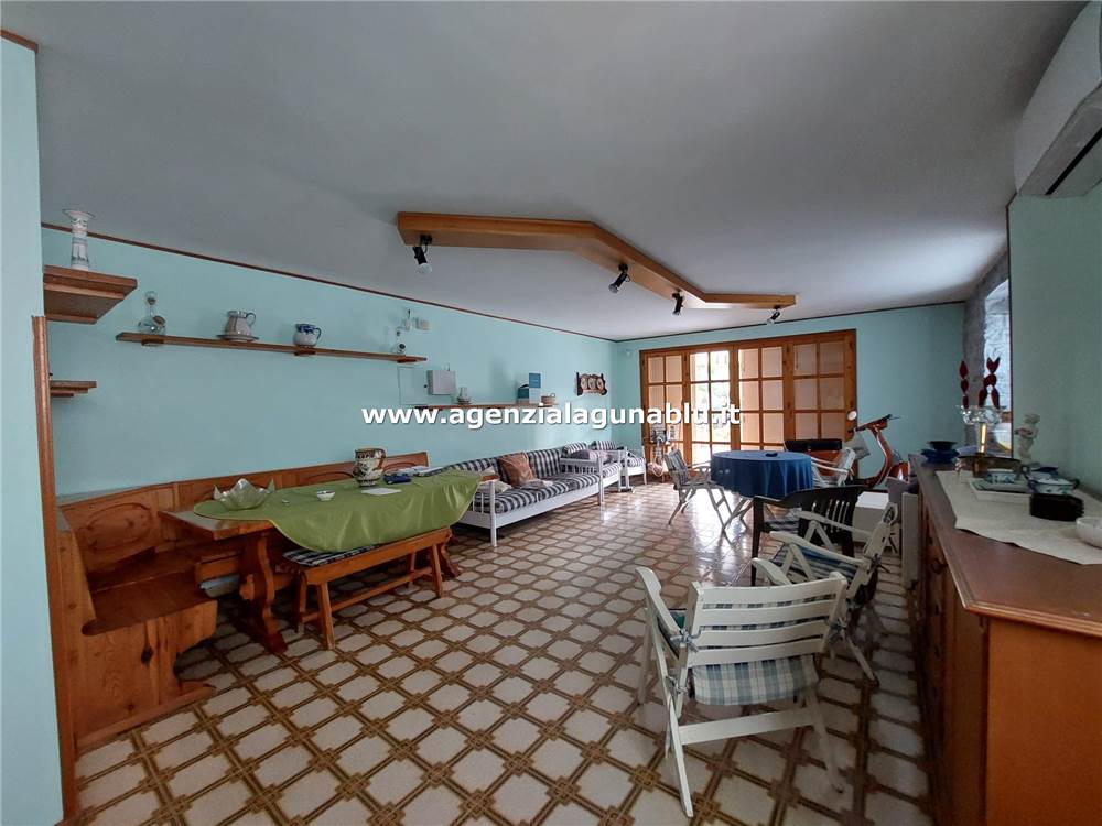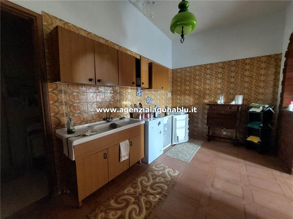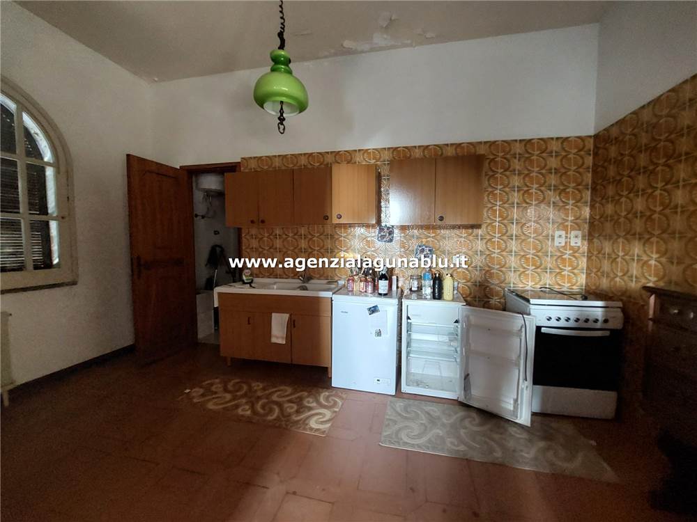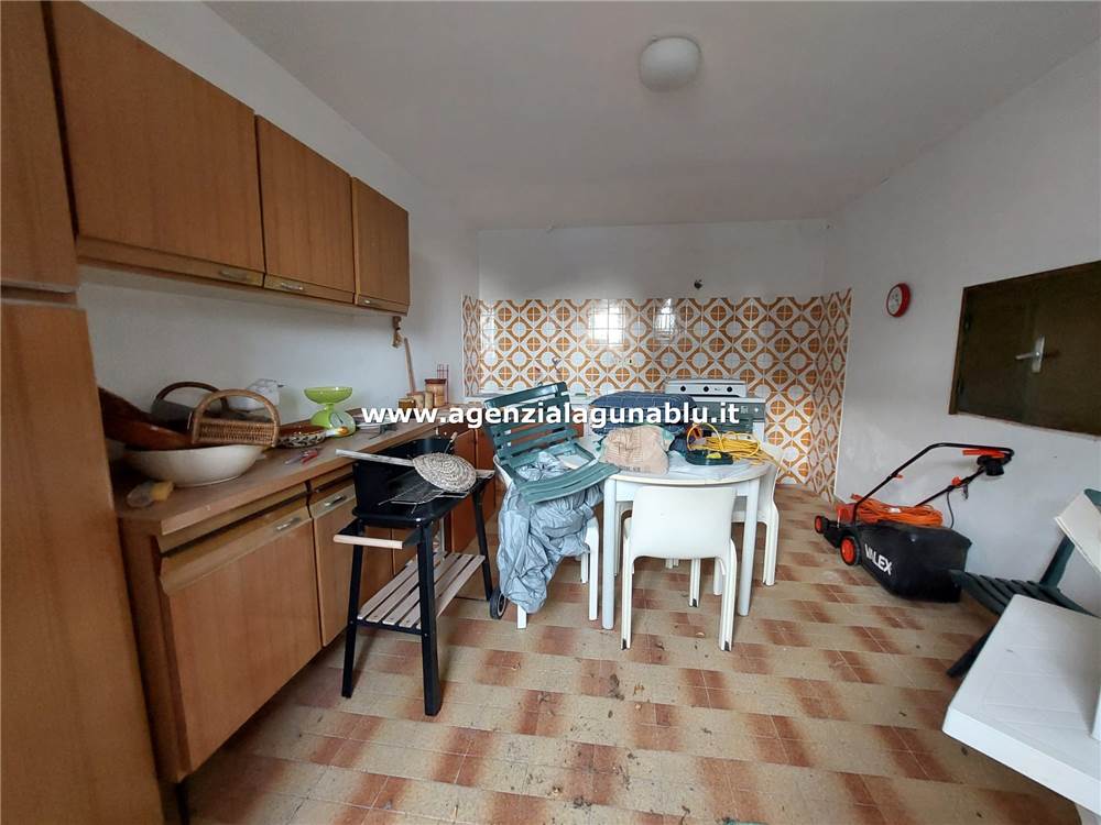Adiacente al salone si trova una dispensa e una cucina-soggiorno di ampie dimensioni, anch’essa dotata di una veranda esterna, ideale per pranzi all’aperto e serate estive.